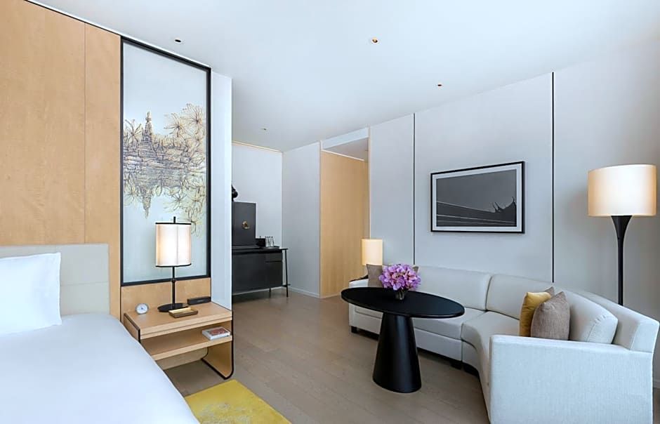 Ta ett dopp i den utomhus infinitypoolen — en saltvattenoas reserverad för vuxna — där ett grunt parti och en hisnande utsikt ramar in Bangkoks skyline. Spa‑ och wellnesspaket inbjuder till ett djupare avslappnande, och en solterrass erbjuder en ljus, avslappnad plats att ta till sig den urbana atmosfären.
